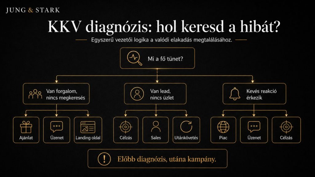 Ha a saját cégedben ezt a helyzetet látod, akkor érdemes nem rögtön új csatornát vagy új kampányt keresni. Többet segít, ha előbb azt nézed meg, hogy a probléma az ajánlatnál, az üzenetnél, a célzásnál, az érkezési oldalon vagy a marketing és értékesítés kapcsolatában van-e.