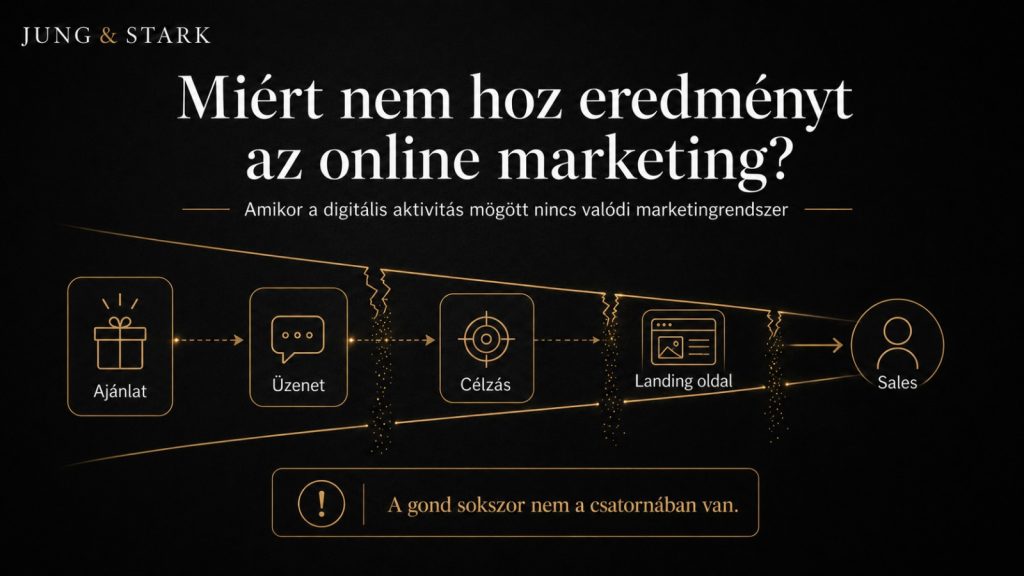 Az online marketing azért nem hoz sokszor eredményt, mert önmagában nem elég. Nem elég jelen lenni, hirdetni, posztolni vagy kampányokat futtatni. Az is számít, hogy van-e erős ajánlat, világos üzenet, jó célzás, működő landing oldal és értékesítéssel összekapcsolt rendszer.