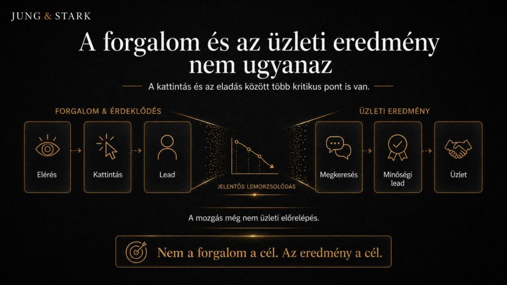 Lehet magas forgalom alacsony relevanciával. Lehet sok érdeklődő gyenge szándékkal. Az is előfordulhat, hogy a marketing elvégzi a maga részét, de az értékesítésnél esik szét a folyamat.